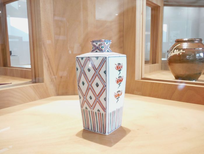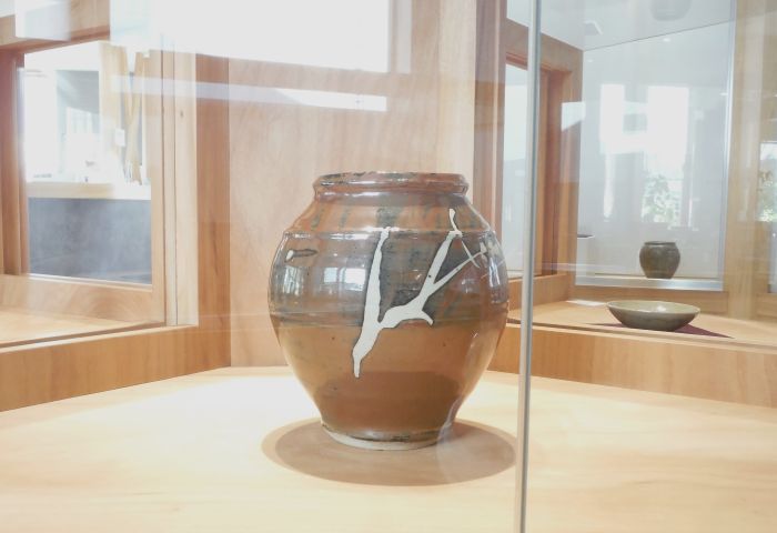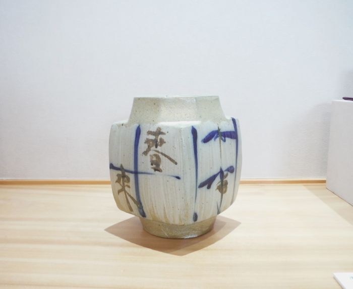 作品紹介② お知らせ2026.01.17 今回も展示作品を紹介していきます。富本憲吉 「色絵磁器」人間国宝 1955年認定 金彩羊歯図皿 染付花風雪月大皿 色絵花瓶 濱田庄司 「民芸陶器」 1955年認定 柿釉抜繪花瓶 塩釉繪刷毛目方壷 黒釉錆流掛茶盌 作品はX、Instagramでも紹介しています。ぜひご覧ください。
